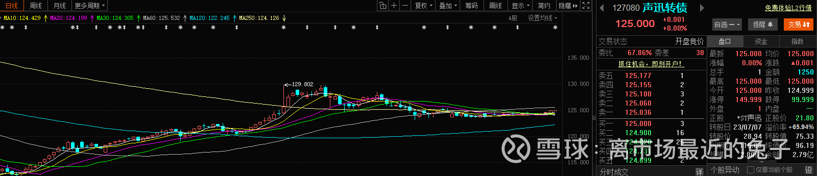 *声迅昨日晚间发布减持期满的公告,增加持有者信息,如果放量突破年线压制,有望开启趋势性的反弹,耐心拿好手中的筹码(正股或转债),等待大脉冲或者摘帽时刻。