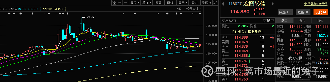 宏图转债:在商业航天消息面的刺激下,正股今日放量上行,突破20日均线,技术面上已经反转,带动宏图转债反弹,目前宏图转债已进入修正计数期,耐心等待开奖结果。