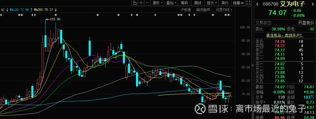艾为电子总股本仅有2.3亿,其中流通股仅有1.357亿,股性十分活跃,目前KDJ指标处于超卖区间,技术面上诱企稳的动力,先将其加入股票池,重点关注量价关系的变化。