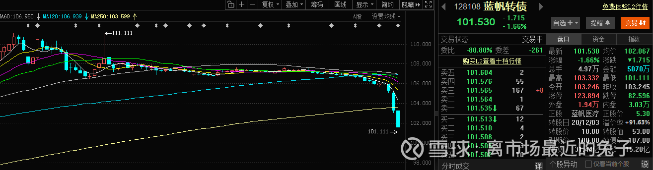 蓝帆转债:虽然正股波动幅度不大,但蓝帆转债出现情绪面的回调,跌至101附近,带崩低位转债市场,如果持有到期,将会获得6.3%的收益率,能够跑赢大部分理财产品。