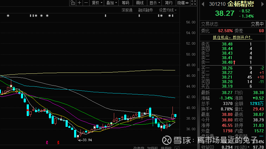 金杨精密总股本仅有1.146亿,半年内没有大规模解禁,股性相对活跃,昨日盘中放量突破60日均线,技术面上已经反转,是个右侧博弈点,萌兔将在春节后适当参与