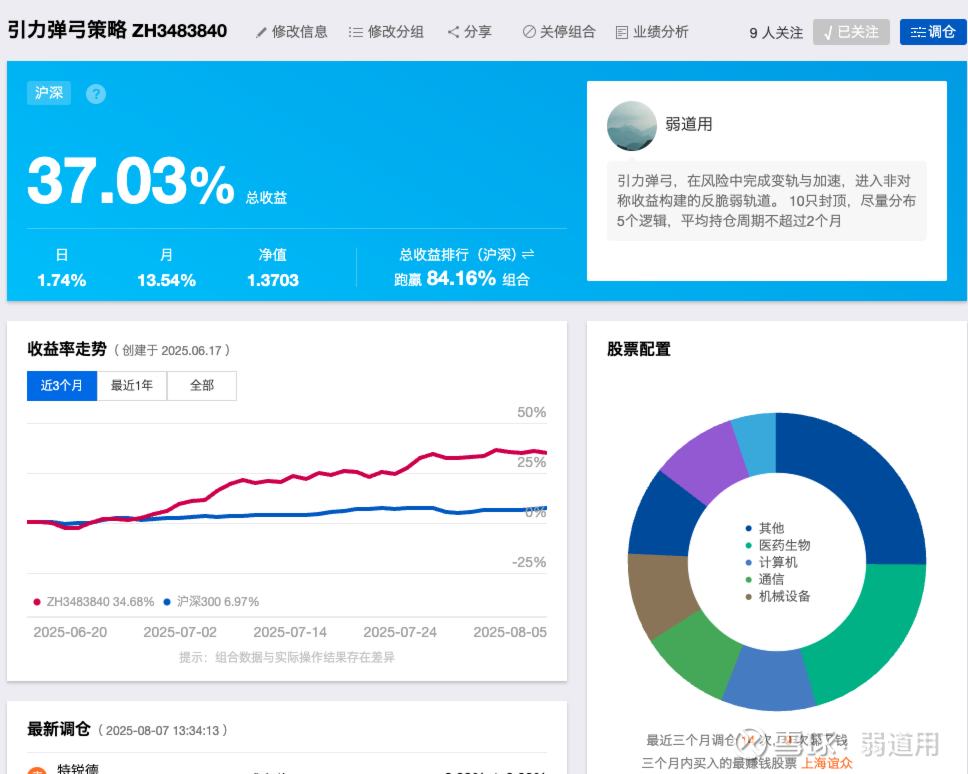 8月13日达成新高,目前持仓中银禧科技、国盾量子、长盈精密、真视通均有启动迹象。