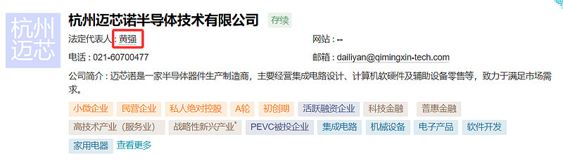 更令人担忧的是潜在的同业竞争问题。资料显示,思凌科实际控制人黄强同时在杭州迈芯诺半导体技术有限公司担任董事长、法人代表。迈芯诺旗下核心资产上海启鸣芯半导体技术有限公司,从团队背景到产品定位均与思凌科高度重合,且两家公司存在专利交集。这种关联关系可能分散标的公司的核心资源,甚至可能导致核心资产或技术人员的转移。