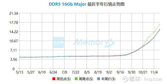 首先要说明一下,DRAM芯片最近确实是涨价了,DDR5和DDR4 都涨了很多,这波行情出现在9月30日之后。而DDR4的行情更早,年初到现在,差不多涨了10倍,发神经的。