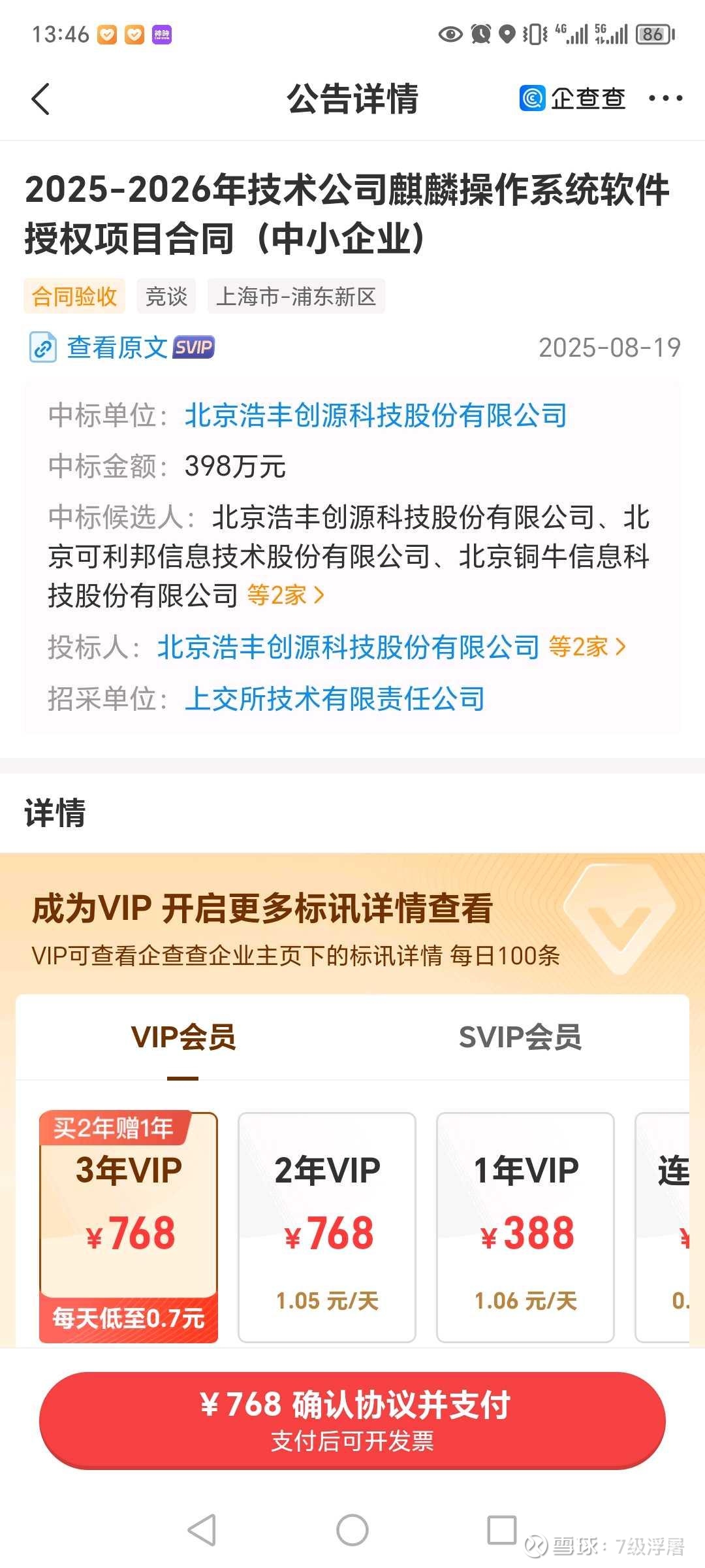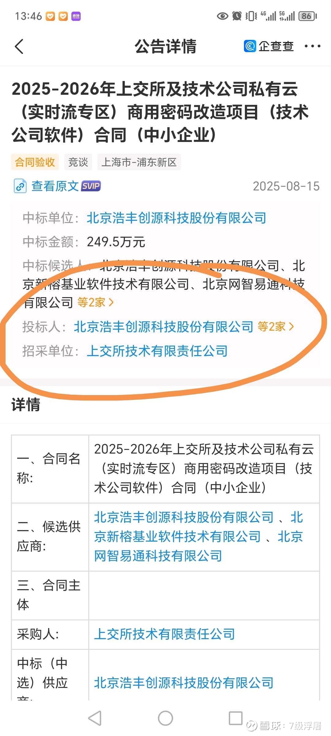 中标上交所两个标的。合计647万。看看上市公司,哪家有这个能力,我看北京铜牛也在。