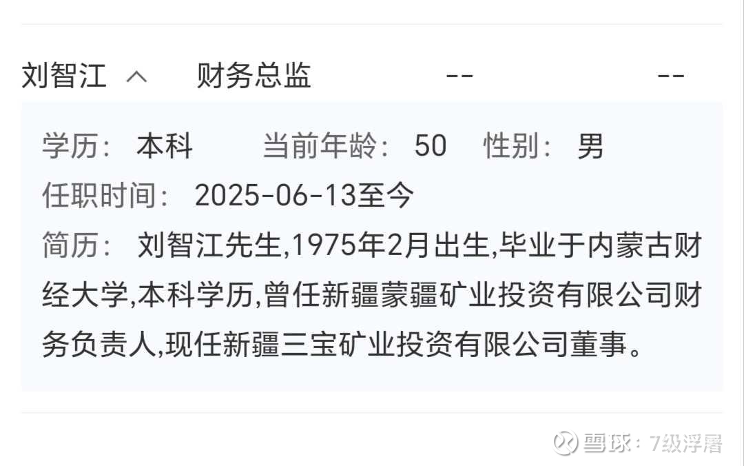 管理层入驻的都是投行经历的人。这不是明摆了要借壳。财务总监是蒙疆矿业负责人,三宝矿业董事。