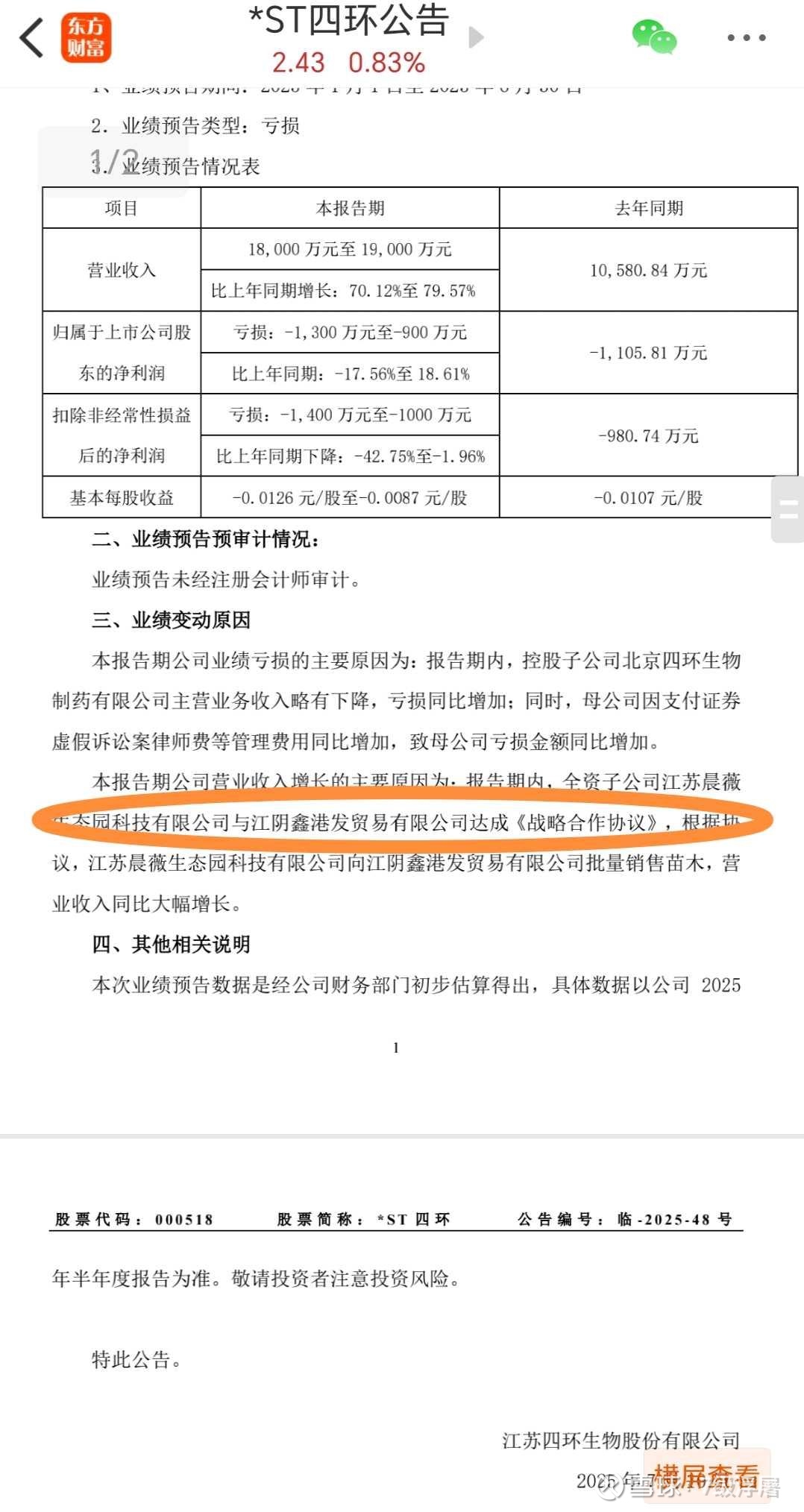 那三季度,我预测营收应该在2.8亿左右。基本可以实现摘帽无忧,一旦坐实,基本是启动第一波行情。那接下来就要考虑明年营收的问题,正常情况下,邱总四季度就应该采取行动。明年1亿的苗木合同肯定不能继续,3550万的建设合同也不可能持续,合计1.4亿的营收缺口。如何弥补?无论是矿产注入还是朴朴超市借壳,四环变成八环甚至八十环都有可能。现在没有一个st比四环更有性价比。创新医药,矿产资源,朴朴超市,提交给国资的运营方案,每一个解密都会是暴涨逻辑,毕竟四环低价低市值,说她2026年亚振也是可能的,让我们拭目以待。$*ST四环(SZ000518)$ $*ST亚振(SH603389)$ $上海电力(SH600021)$ @小秘书