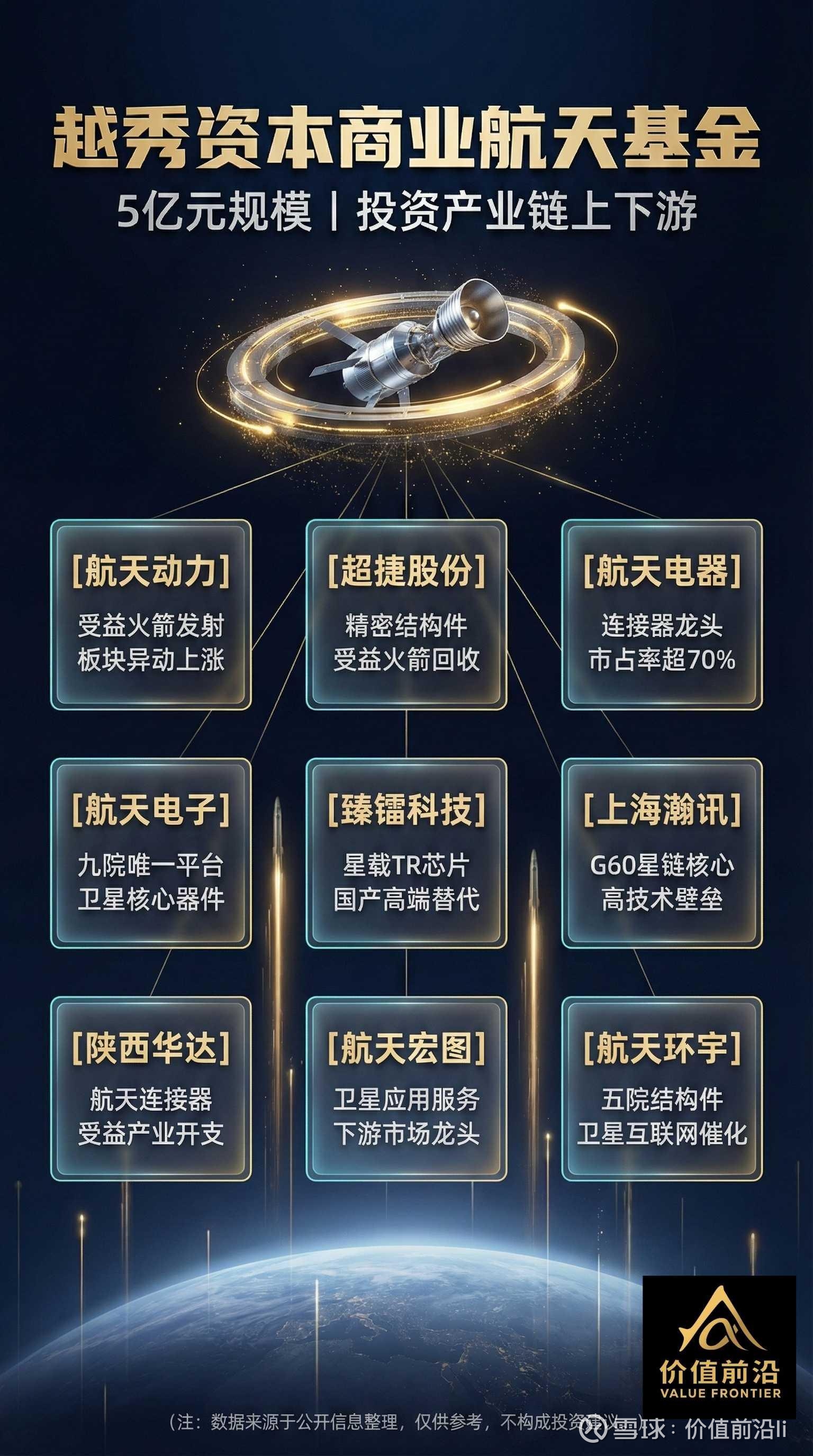 随着“商业航天”被明确写入政府工作报告,并在“新质生产力”中占据重要一席,中国商业航天产业正迎来从“技术验证”向“规模化应用”转折的关键节点。近期,越秀资本宣布设立5亿元规模的商业航天基金,旨在布局产业链上下游。本文将以该基金披露的9大核心标的为切入点,深度剖析中国商业航天产业链的投资逻辑、核心壁垒及未来增长极。