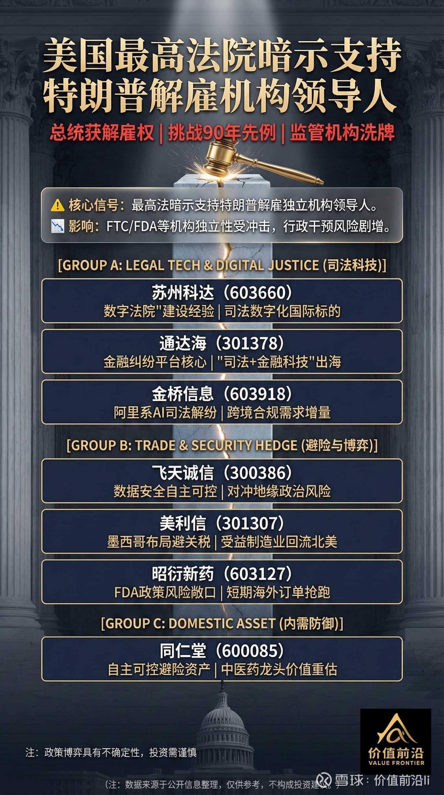 当“独立监管”变为“总统意志”,当专业主义让位于政治忠诚,市场的底层逻辑将发生剧变。对于A股投资者而言,这绝不仅仅是一条国际新闻,而是一场关于**“司法博弈”、“贸易避险”与“内需防御”**的资产定价重估。