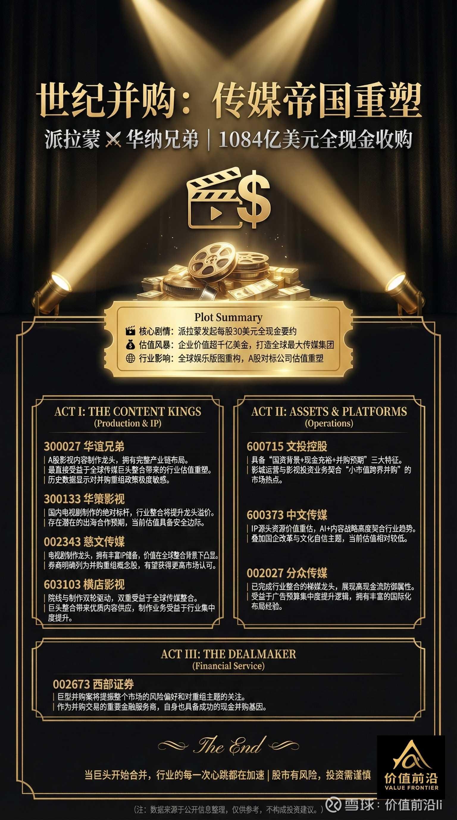 行业影响: 全球娱乐版图重构,A股对标公司估值重塑。这直接导致了A股传媒板块的逻辑从“炒作票房”转向了“资产重估”。