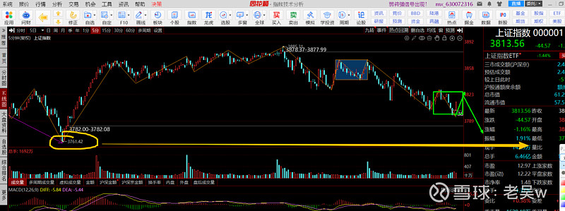 再从30分钟图和5分钟走势做一下推演如下,关键点位都是3761点。