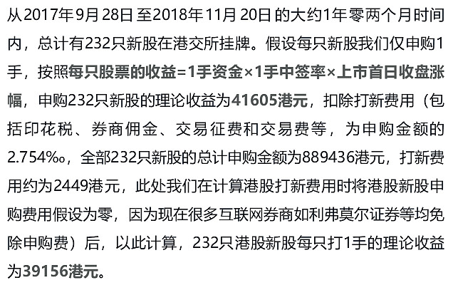 本人并未做过统计,但通过以上两项统计很明显可以看出,港股打新的收益对于多户小资金来说肯定是远远大于正常可实现年化收益的。