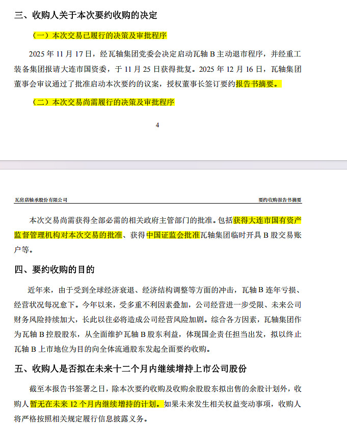 本次要约收购以瓦轴 B 的股权分布符合退市要求为生效条件。在本次要约收购有 效期内最后一个交易日 15:00,中登深圳临时保管的预受要约的瓦轴 B 社会公众股股票 申报数量超过 39,050,000 股,即收购后瓦轴 B 社会公众持股数占总股本的比例低于 10%,根据深圳证券交易所《上市规则》的规定,瓦轴 B 将不再具备上市条件,则本次 要约收购生效。
