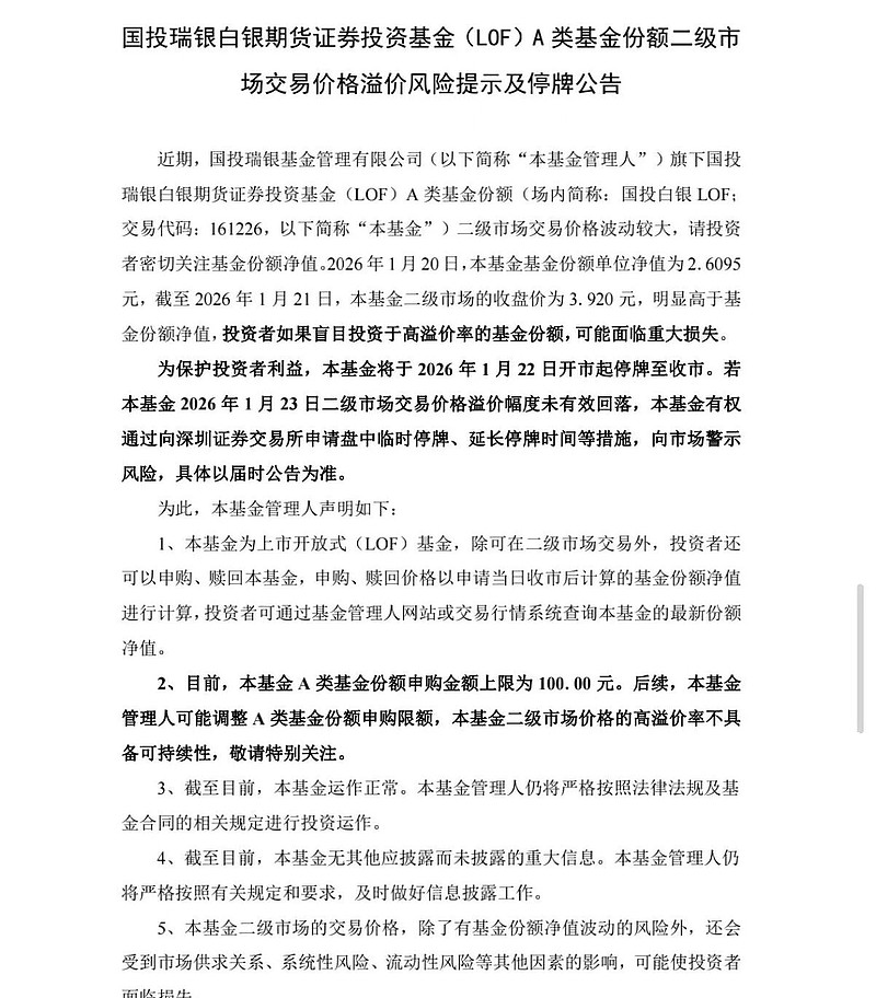 [一]明天(20260122周四)停牌一天,关门,不能买卖,可以正常申购