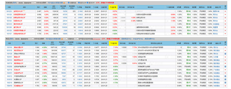 ②116 黄金主题LOF,128标普信息科技开了6*10