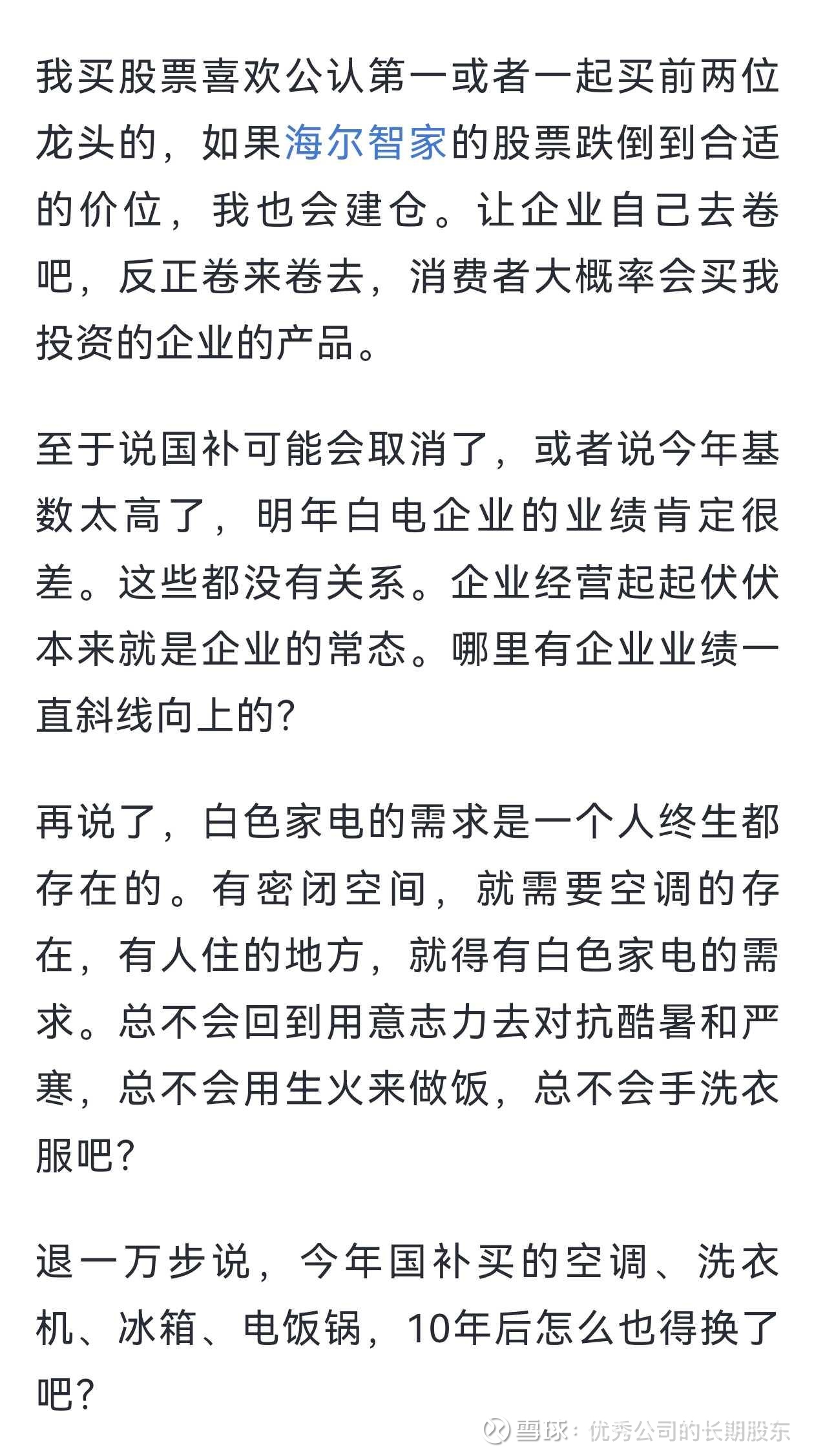 我其实2023年起,就有了建仓海尔智家的想法,但是那时伊利股份的价格还不错,就集中火力买伊利股份,后来觉得蒙牛乳业也可以,又集中买了蒙牛乳业。