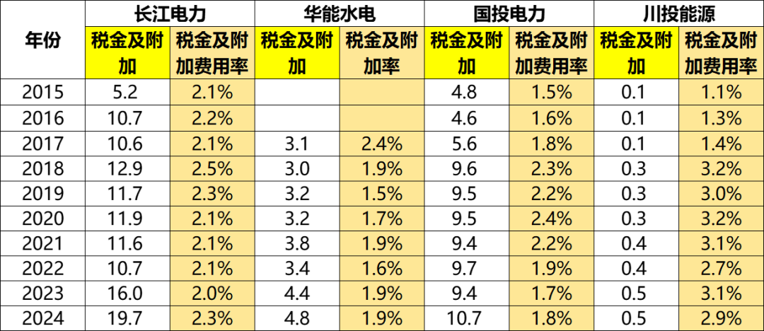 税金及附加这块,除了川投为3%左右的水平,数据高一点以外,其他几家差不多都在2%左右,华能水电略微低一点点。