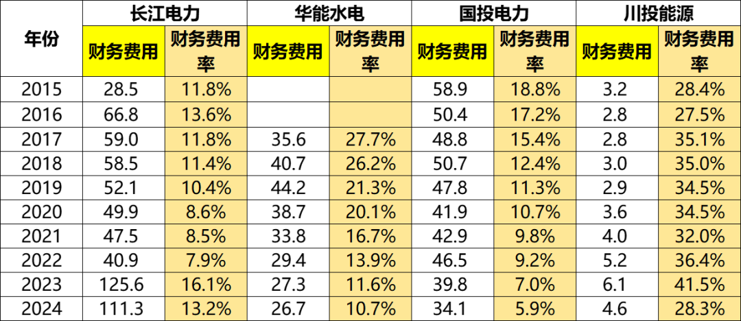 川投的财务费用则非常高,2017~2022年一直在30%以上,2023年跳增至41.5%,虽然2024年也骤降,但也达到28.3%之多。