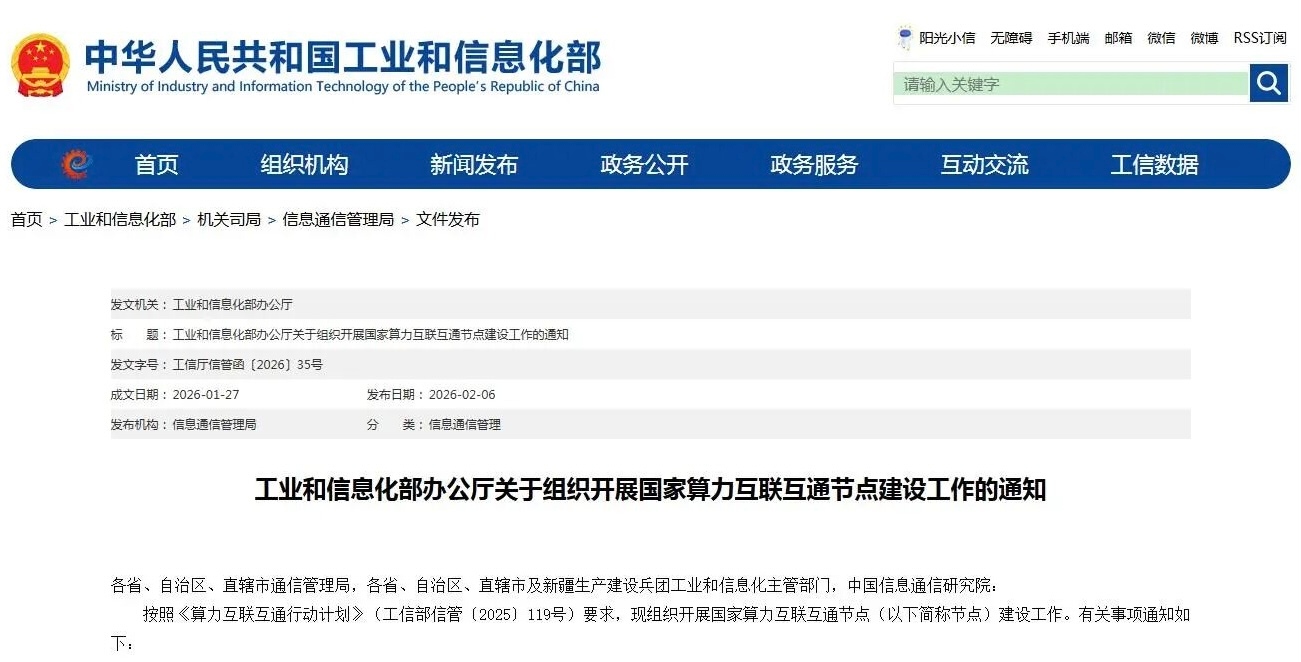 国家最新数据中心互联互通政策(工信部2026年2月6日发布《关于组织开展国家算力互联互通节点建设工作的通知》)的核心,是旨在构建一个全国一体化、高效协同的算力网络。其纲领性文件是2025年9月由国家发展改革委、国家数据局、工业和信息化部、国家能源局四部门联合印发的 《国家算力基础设施高质量发展行动计划(2025-2027年)》。