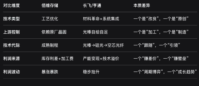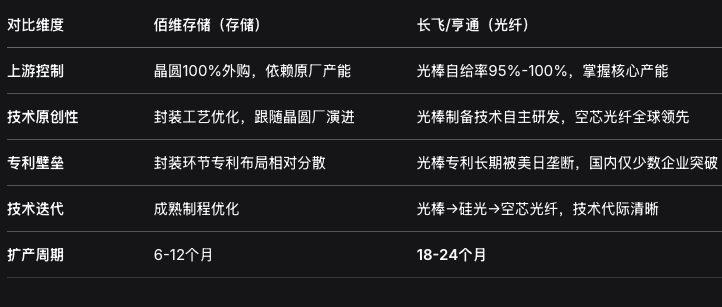 国内几家光纤龙头公司的技术壁垒、商业模式远远优于几家需要采购晶圆的存储企业。同样受益于AI长期需求,但佰维偏周期,长飞/亨通偏成长。赵燕翎之前反复论证亨通的价值,核心逻辑是:技术壁垒+产能自给+供给刚性=利润确定性。