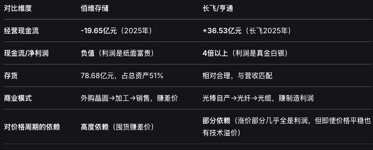 亨通的2000亿市值目标,不需要靠“价格会不会跌”来支撑。它靠的是:光棒自给、空芯光纤技术领先、硅光平台卡位、华为战略合作、经营现金流健康——这些与佰维的“豪赌”模式,有着本质区别。