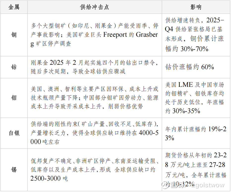 美联储降息:2025年9月美联储宣布首次降息25bp,随后市场预期全年再降50bp,美元指数走低,金属以美元计价的成本下降,资金倾向流向实物资产,直接推高金、银、铜等价格。