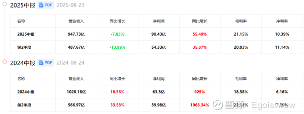 1) 利润率大幅提升:毛利率从2024年上半年的18.38%升至21.15%,净利率从6.16%跃升至10.39%(均高于行业中值);