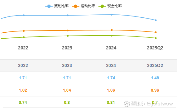 3) 流动性指标走弱:流动比率持续下降,预付账款增速>营业成本增速,存货周转率下降,总资产周转率下降,说明资产使用效率有所减弱。