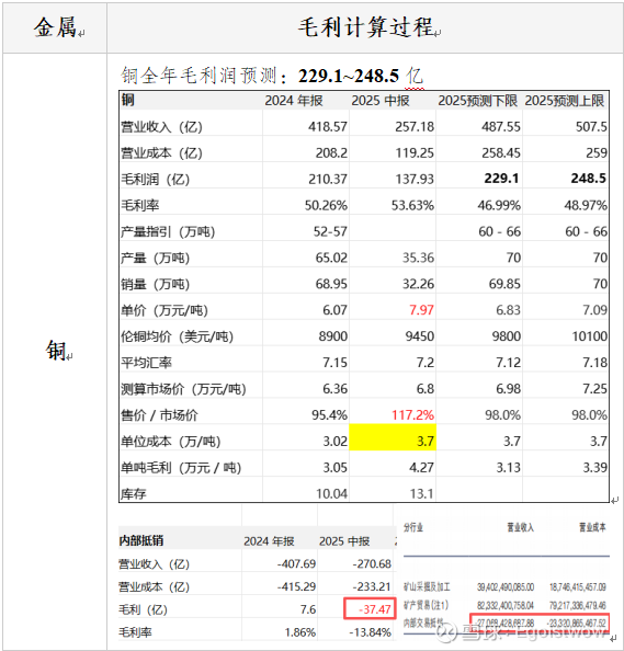 铜:全年毛利润预测:229.1~248.5亿