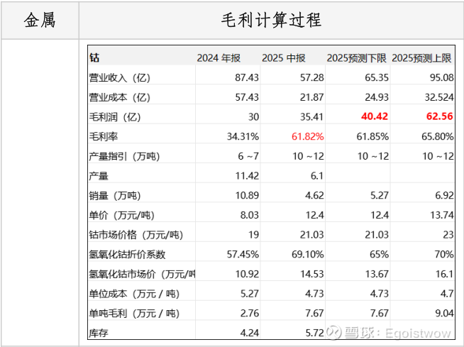 钴:全年毛利润预测:40.42~62.56亿