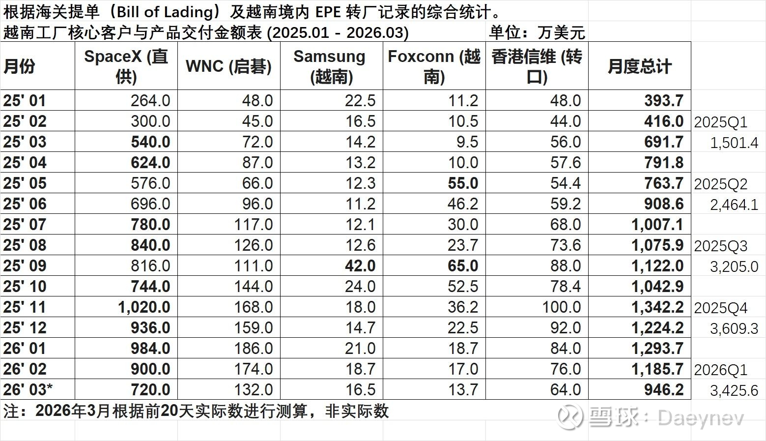 此前的墨西哥、越南工厂出货 / 营收表格为企业内部管理数据,与季报的公开披露信息、财务数据、业务逻辑实现全维度闭环匹配,无任何矛盾点,造假成本极高,可认定为真实业务数据,核心验证维度如下: