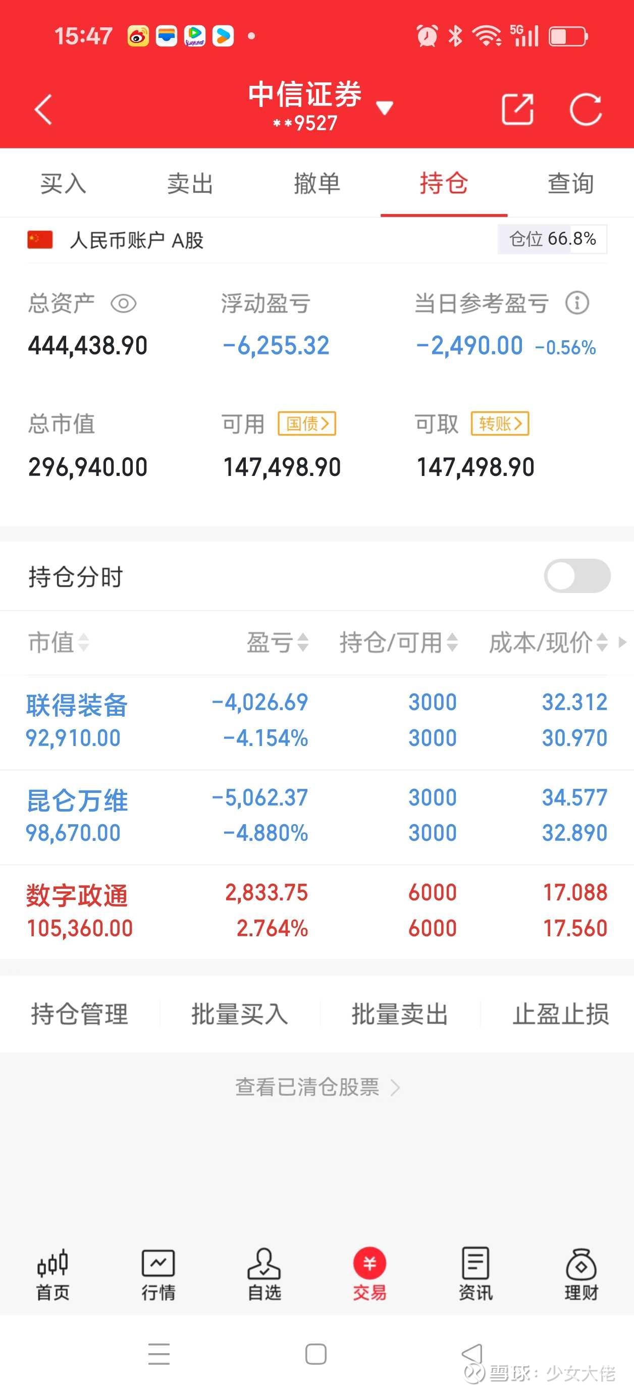 周五账户➖2490。