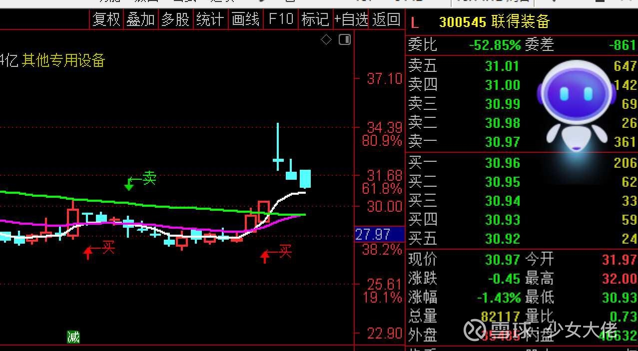 可以对比看我前面做的万马科技的走势,但是它整体力度强要比万马差点,就是启动信心要差一些,从系统看如果跌破白色操作线30.6那么短期就会进入一个洗盘阶段,就有可能回到29-29.50区间是一个加仓点位,也就是系统绿色操作线的位置,所以这个位置大盘也刚好弱势是正常洗盘不要觉得就不行了,哪怕下来点,这个票他值得,用教学的话就是这么理解,不懂在留言区问!