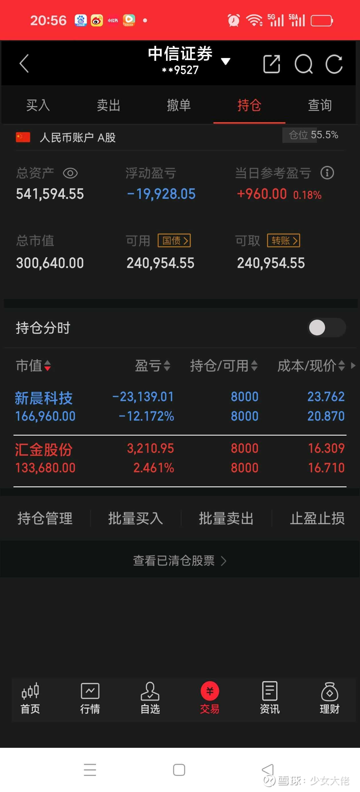 $新晨科技(SZ300542)$ 周五真的想出了,看了很多评论最终打算在持有一周,看下周如果再没有起来的意思可能要调整下了,等走好再买回来都行,就是一直拿着太难受了,所以下周就是我给他的最后机会了,是不是我不出它不拉?