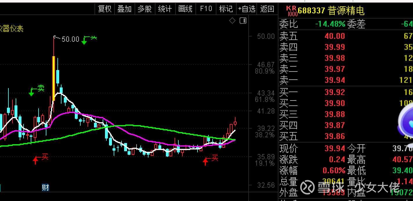 $普源精电(SH688337)$ 今天不温不火,最近就是在纠结一个问题到底是做强还是做底部的,底部肯定有时候就会慢点!这里依然在趋势上所以选择继续持有两天再看看,最好短期拉上去,就是底部刚启动的!