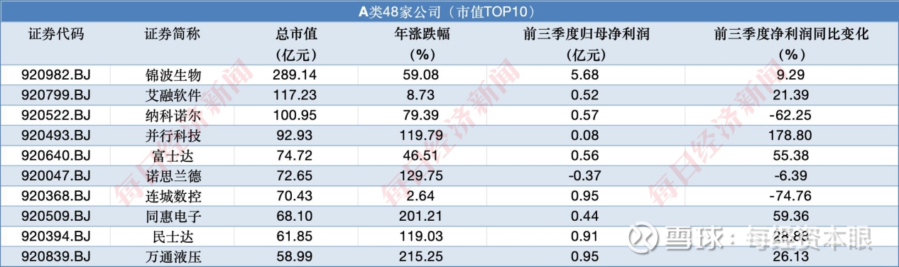 单看48家A级公司,平均市值为45.91亿元,今年以来平均股价涨幅为84%,前三季度平均归母净利润为0.49亿元,前三季度归母净利润平均增速为28%。