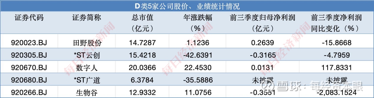 值得一提的是,除了上述两家可能新增“戴帽”的公司外,同样获得D级且已“戴帽”的*ST广道(920680),在日前称无法在法定期限内披露三季度报告。