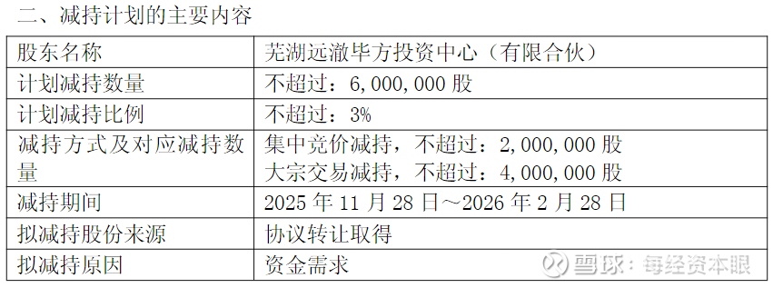 2025年11月7日,新通联发布持股5%以上股东减持股份计划公告。该公告显示,因资金需求,公司股东毕方投资拟于2025年11月28日至2026年2月28日,通过集中竞价或大宗交易方式减持所持有的公司股份,计划减持股份数量不超过600万股,即不超过公司总股本的3%。截至目前,毕方投资持有新通联股份1490.37万股,占新通联总股本的7.45%。