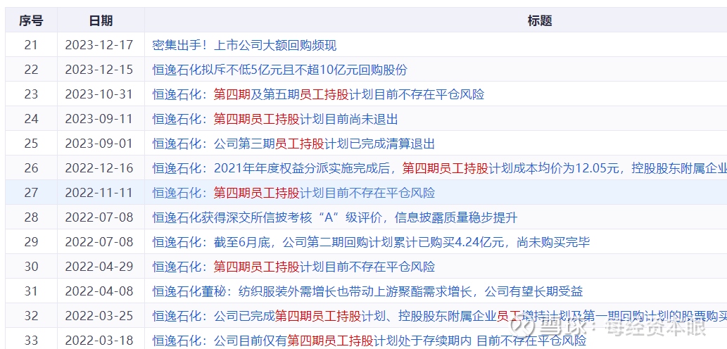 第四期员工持股计划参与者亏损幅度或出现翻倍从本次卖出价格来看,恒逸石化第四期员工持股计划以及恒逸集团及附属企业之部分员工信托计划均以大幅亏损收场。