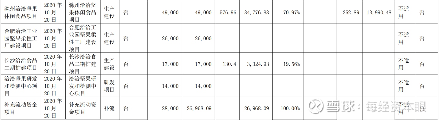 《每日经济新闻》记者查询洽洽食品2025年半年报发现,截至2025年6月30日,洽洽食品2020年五大募投项目中除了补充流动资金项目外,其余四个项目还没有达到预定可使用状态。其中,滁州洽洽坚果休闲食品项目的投资进度为70.97%,长沙洽洽食品二期扩建项目的投资进度为19.56%,而合肥洽洽工业园坚果柔性工厂建设项目和洽洽坚果研发和检测中心项目的投资进度皆为0。