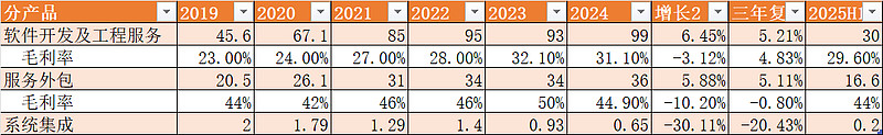 软件开发行业的平均毛利率在40-50%之间。不过,这部分的收入还包含工程服务,比如PLC, PLC产品属于硬件,所以,毛利率偏低也是可以理解的。