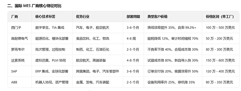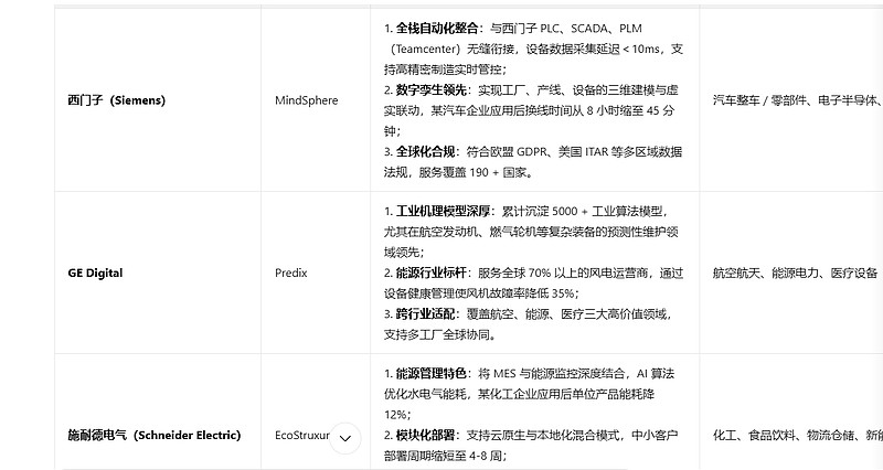 其中MES和行业经验相关,所以在炼钢行业公司有很多的经验,有一定优势,但是要走出这个行业还是比较难的,国际上知名的竞争对手有: