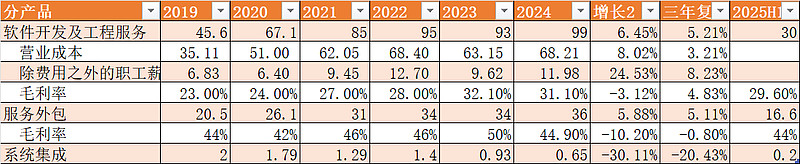 其中软件开发及工程服务的毛利率才30%,这个对于软件行业还是偏低了。