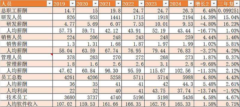 将人工薪酬减去管理、研发、销售里面的薪酬,基本就得到了人力成本为12亿,仅占总成本的17.6%,这个违反软件行业的常识,可能的解释就是他们使用了大量的外包人员。由于国企有岗位限制,所以会大量招聘外包员工(派遣员工)。