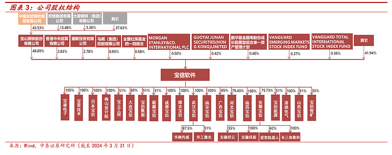 宝信软件的前身是宝钢集团的信息化部门,后来独立上市,目前宝钢股份依然是公司的大股东,占49%的股权。