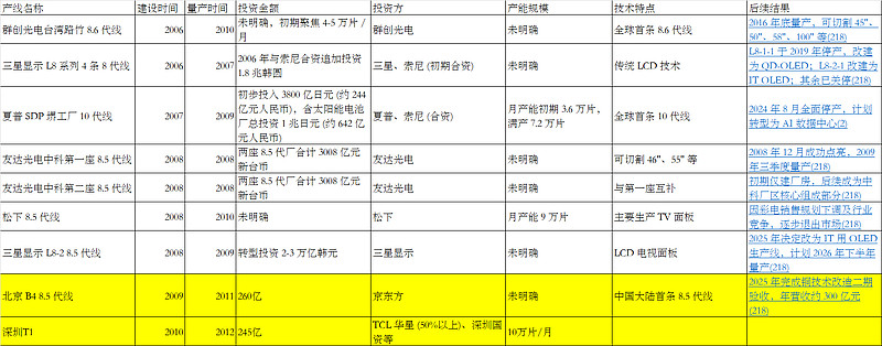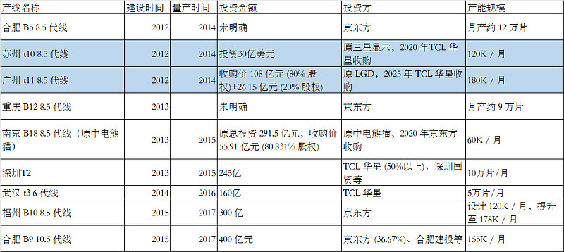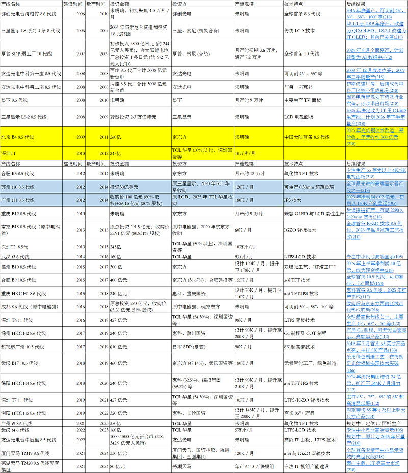 三星和LGD这两个工厂在20年和25年被华星收购,其他大部分产能的建设都是中国资本发起。