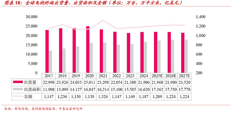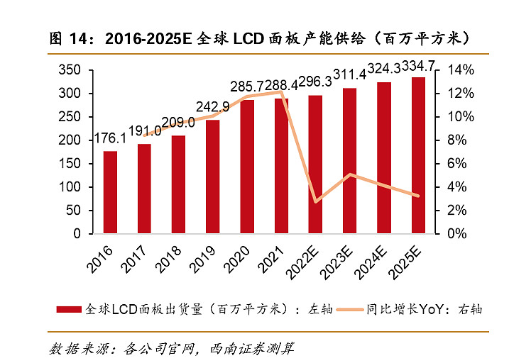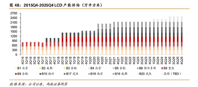 虽然建了那么多产能,但是整体的LCD的产能并不是爆发式增长,券商研报产能如下: