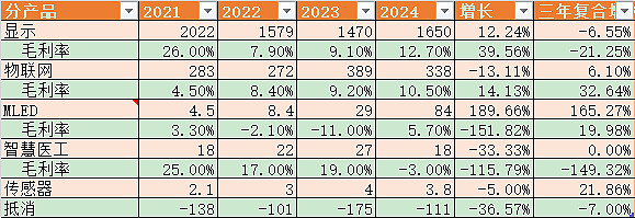 显示的面板依然是公司的主要收入。另外4个产品线是公司1+4+N战略里面的4,其中物联网是包括显示器在内的各种终端。