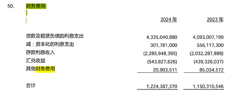 财务费用只有毛利的7%不到,比较健康,明细如下: