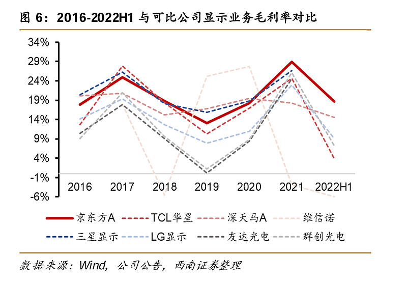 公司的毛利率和行业的毛利率比较接近,无明显成本优势。但是这个“申万显示器件指数”可能也不是适合和公司对比,因为不全是面板企业。券商研报提供了一个和其他面板企业的对比: